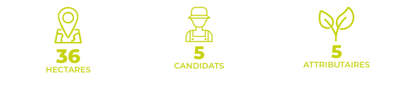 Le Comité Technique Départemental a choisi de répartir de manière équilibrée les 36 ha de terres entres les 5 agriculteurs candidats, en tenant compte des projets économiques et agronomiques de chacun.